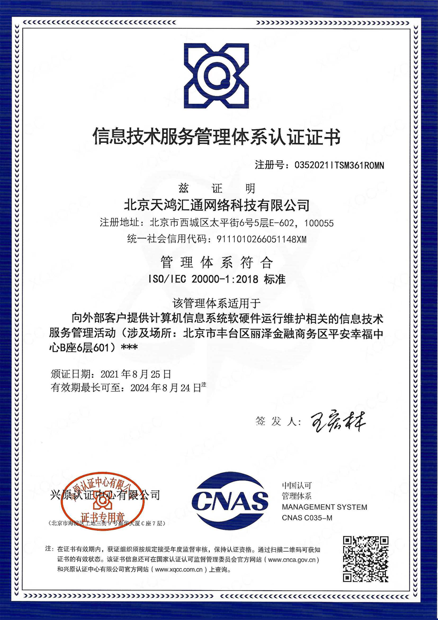 • ISO20000(信息技(jì)術(shù)服務管理(lǐ)體(tǐ)系)