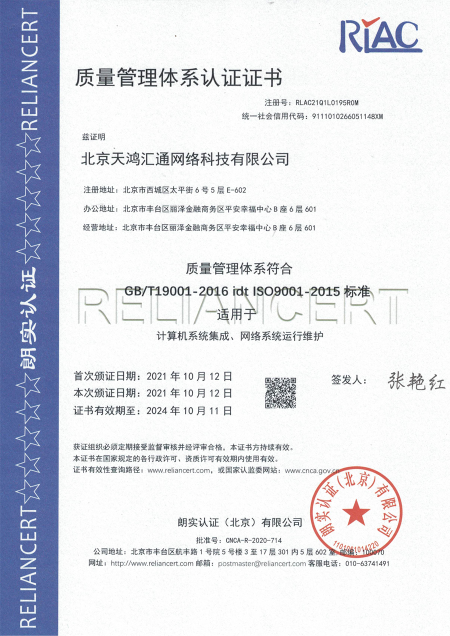 • ISO9001(質量管理(lǐ)體(tǐ)系認證)