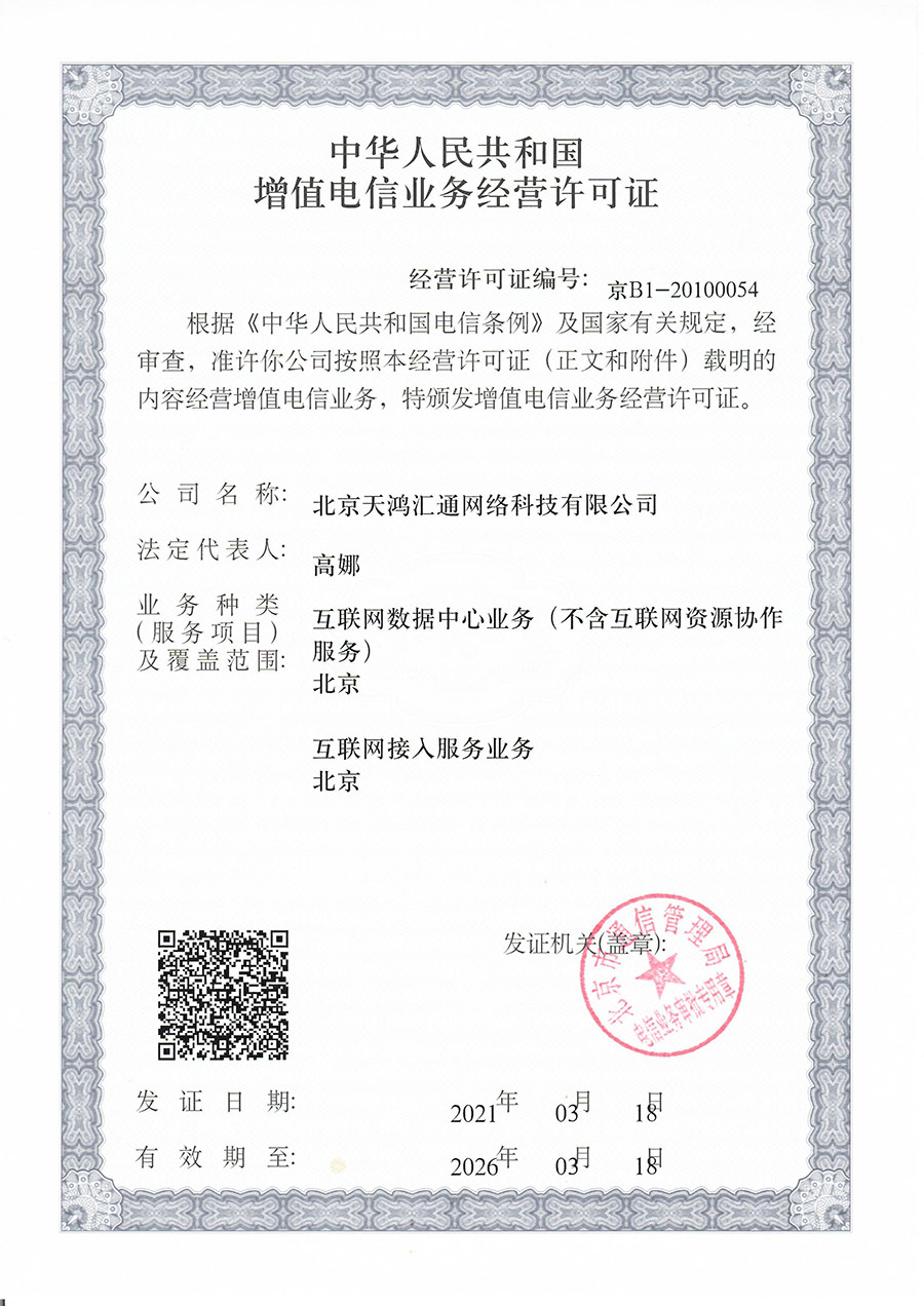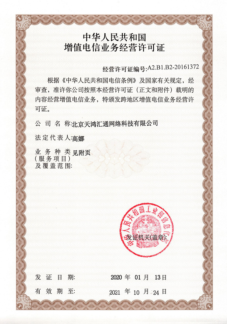 • 增值電(diàn)信業(yè)務許可(kě)證(北(běi)京)